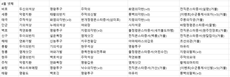 2022년 4월 넷째주 전서버 경매목록