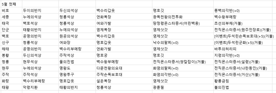 2022년 5월 첫째주 전서버 경매목록