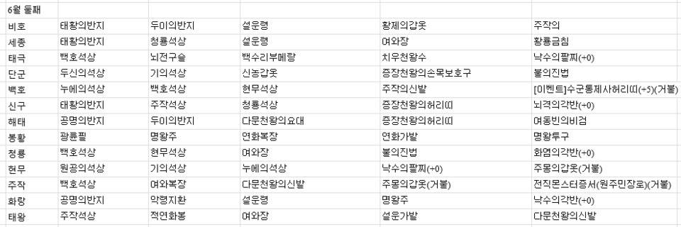 2022년 6월 둘째주 전서버 경매목록