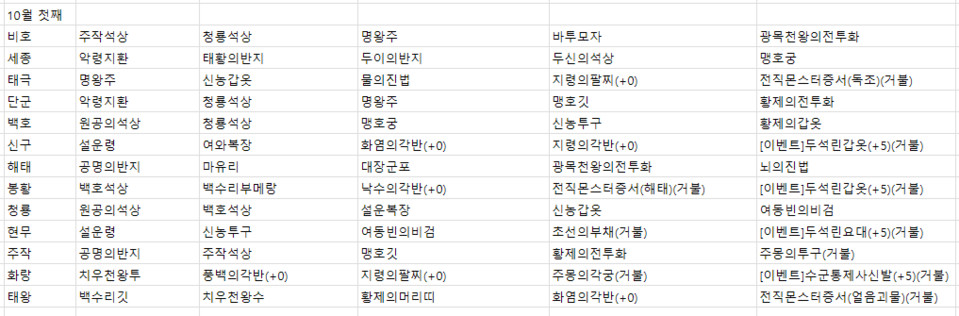 2023년 10월 첫째주 전서버 경매목록